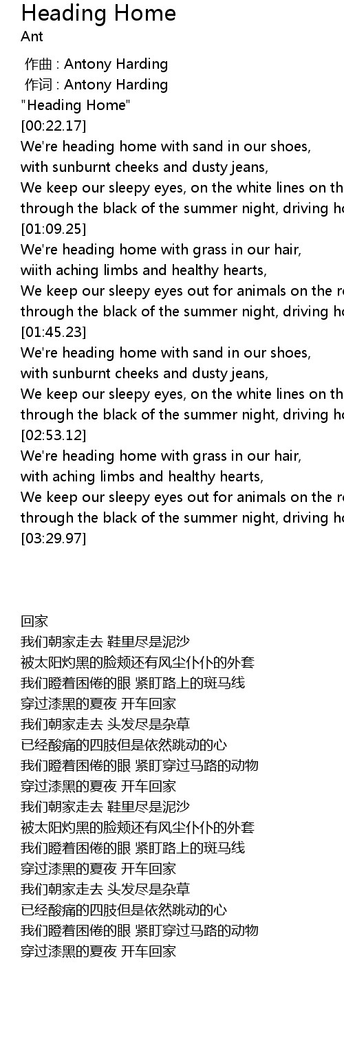 | [00:02.46] | " Heading Home" |