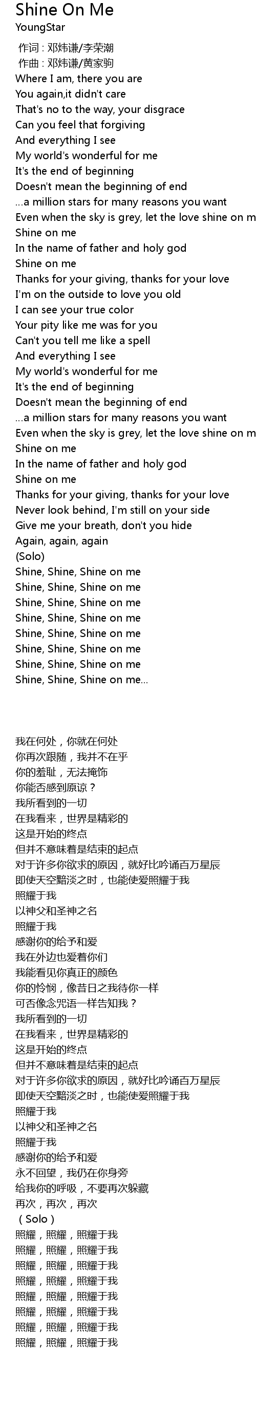 | [03:47.200] | Shine, Shine, Shine on me |