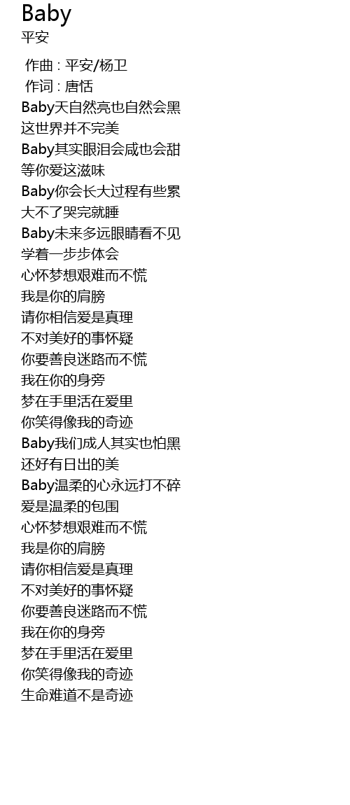 | [00:39.34] | Baby nǐ huì cháng dà guò chéng yǒu xiē lèi |