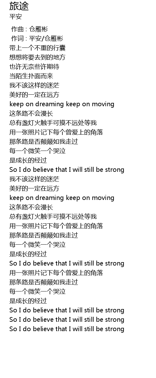| [00:01.00] | 作词 : 平安/仓雁彬 |