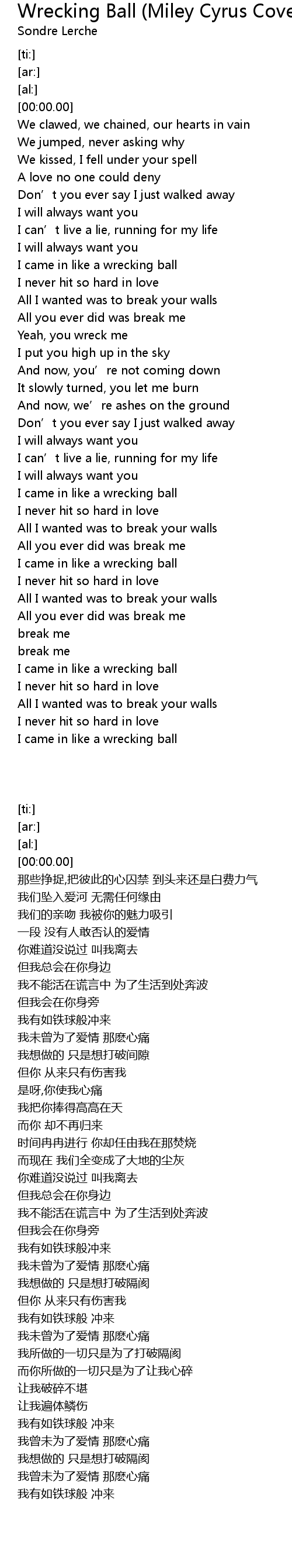 | Song | Wrecking Ball (Miley Cyrus Cover) |