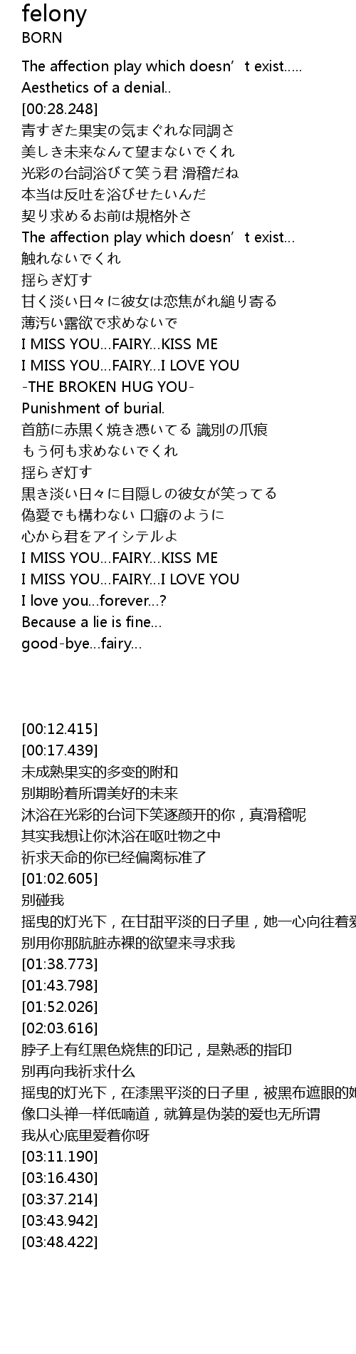 | [01:38.773] | I MISS YOU FAIRY KISS ME |