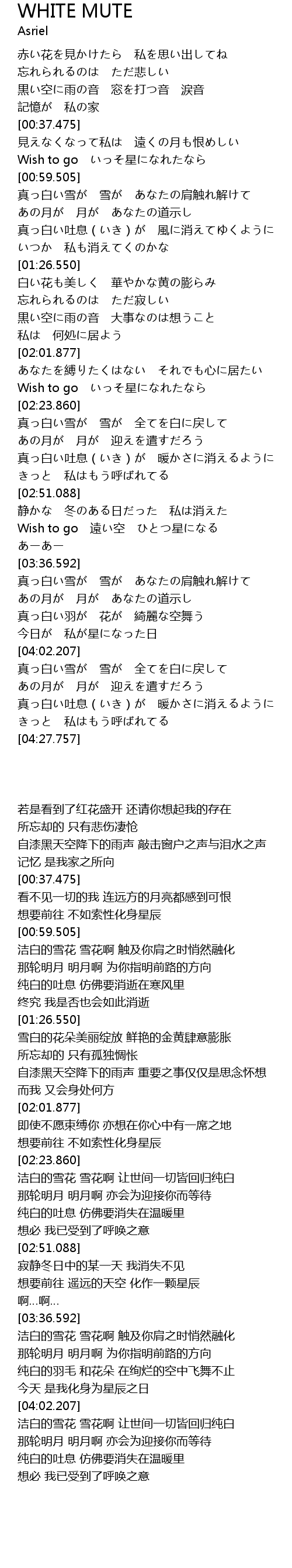 | [03:26.628] | Wish to go 遠い空 ひとつ星になる |