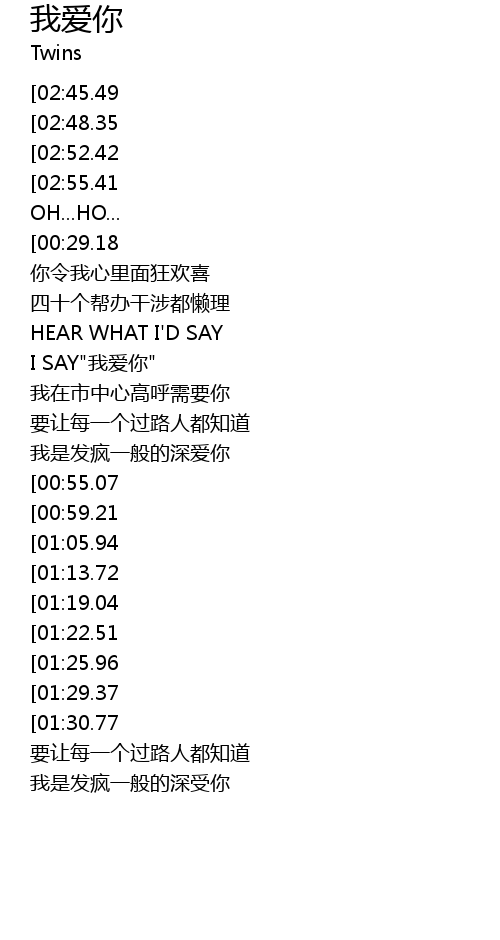 | [02:59.49][02:45.49][00:00.75] | OH...我爱你 |