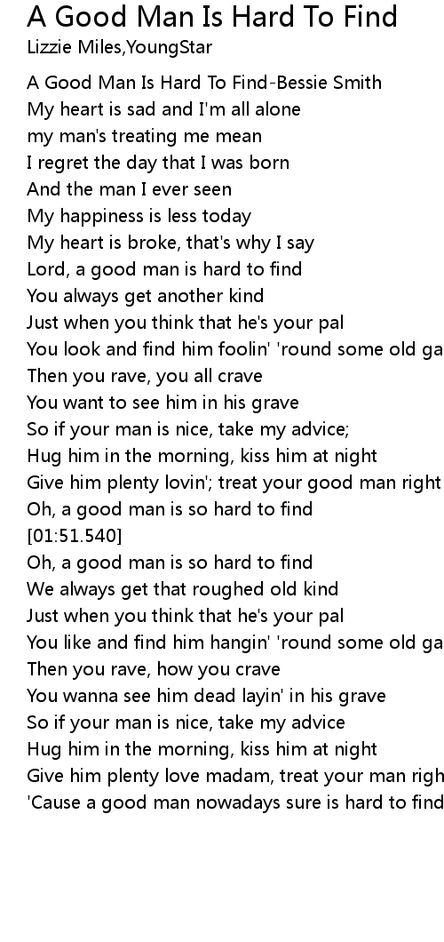Oh, a good man is so hard to find |
