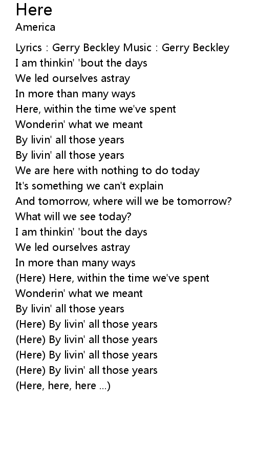 | Lyrics:Gerry Beckley Music:Gerry Beckley | |