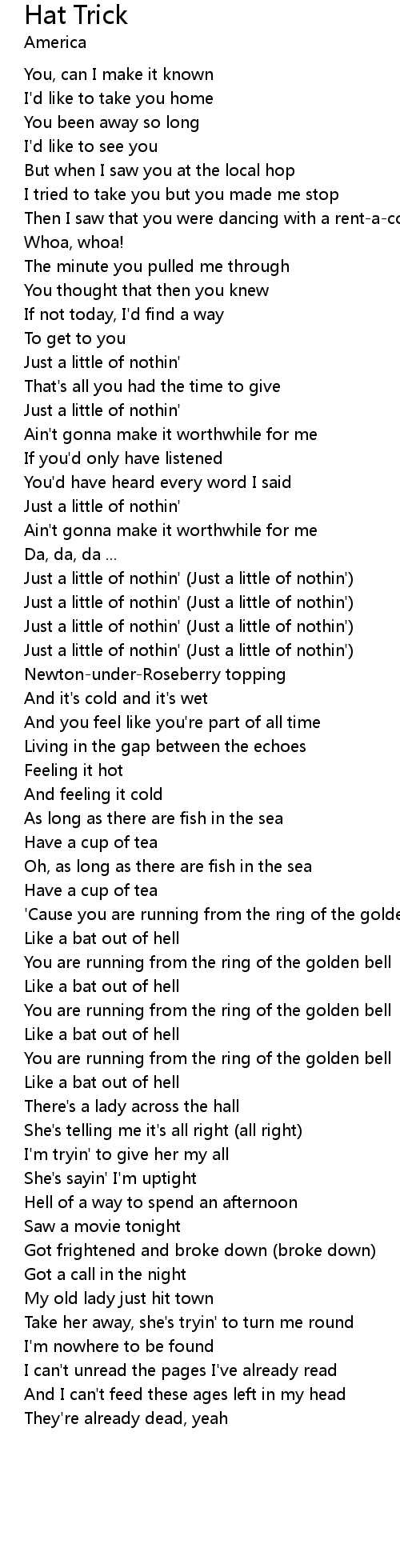 You been away so long |