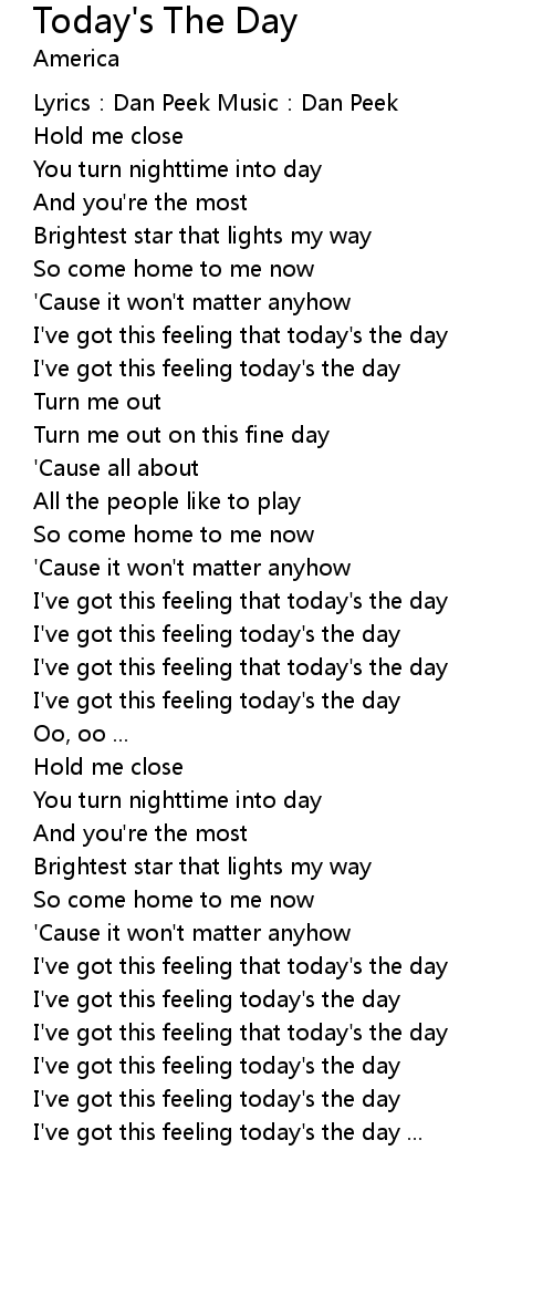 | I' ve got this feeling today' s the day ... |