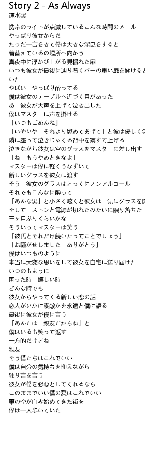 | Song | Story 2 - As Always |