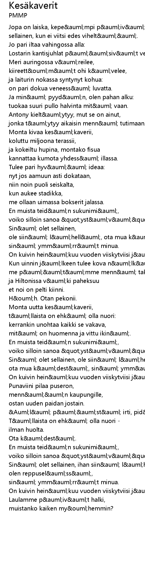 | Monta kivaa kesäkaverii, | |
