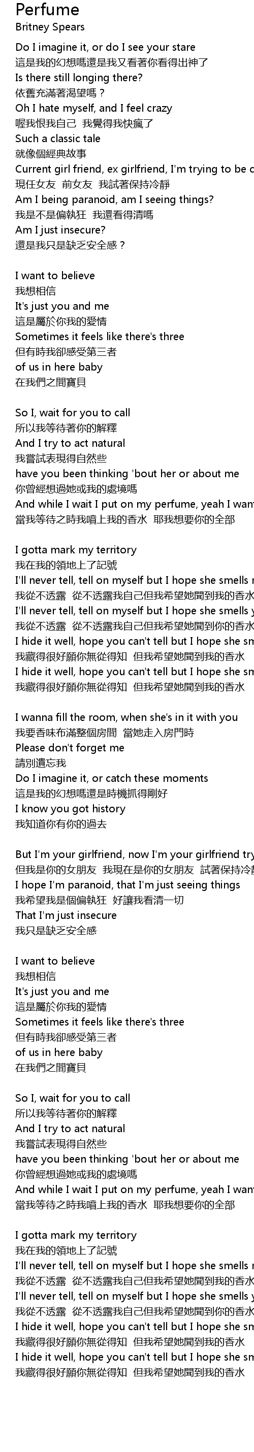 | 當我等待之時我噴上我的香水 耶我想要你的全部 | |
