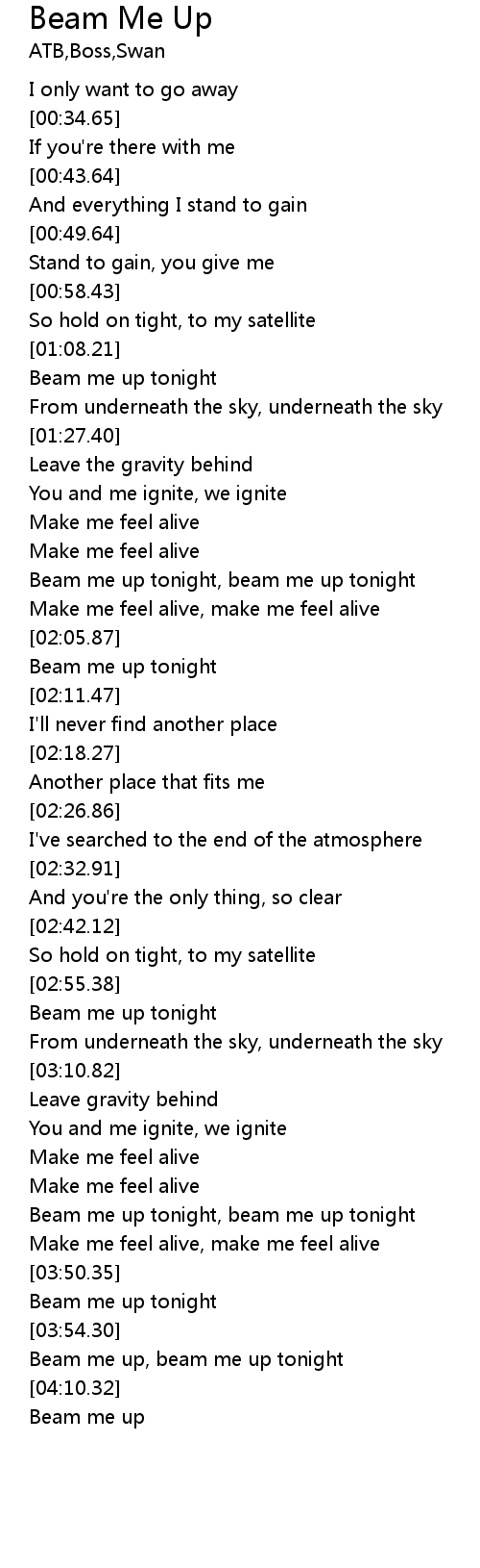 | [03:32.50] | Beam me up tonight, beam me up tonight |