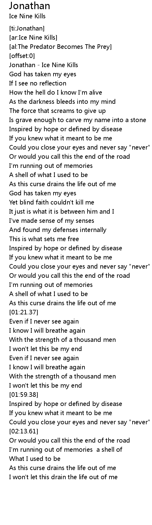 [00:00.29] Jonathan - Ice Nine Kills