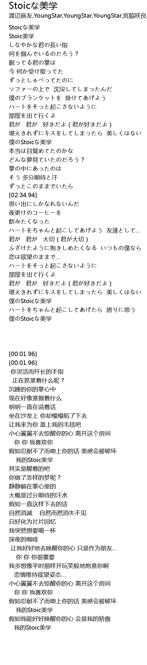 | [04:03.02] | 堪えきれずにキスをしてしまったら 美しくはない |