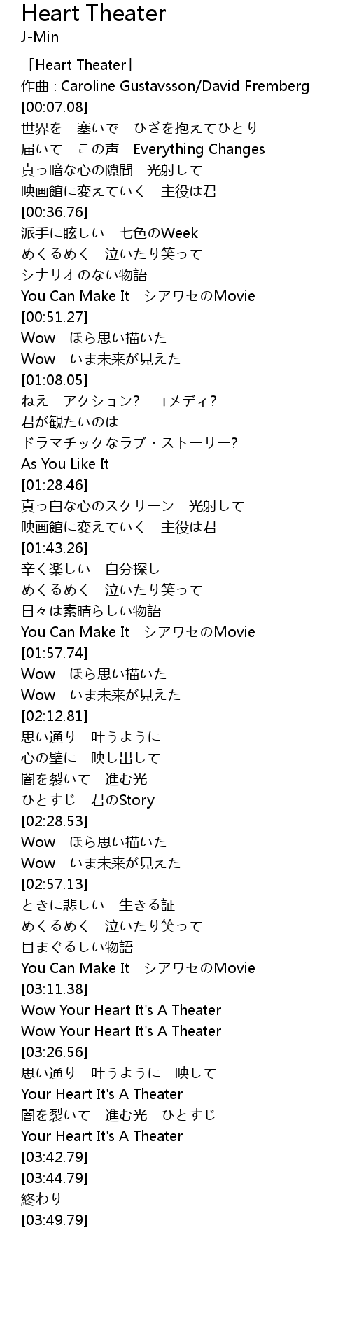 | [03:12.19] | Wow Your Heart It' s A Theater |
