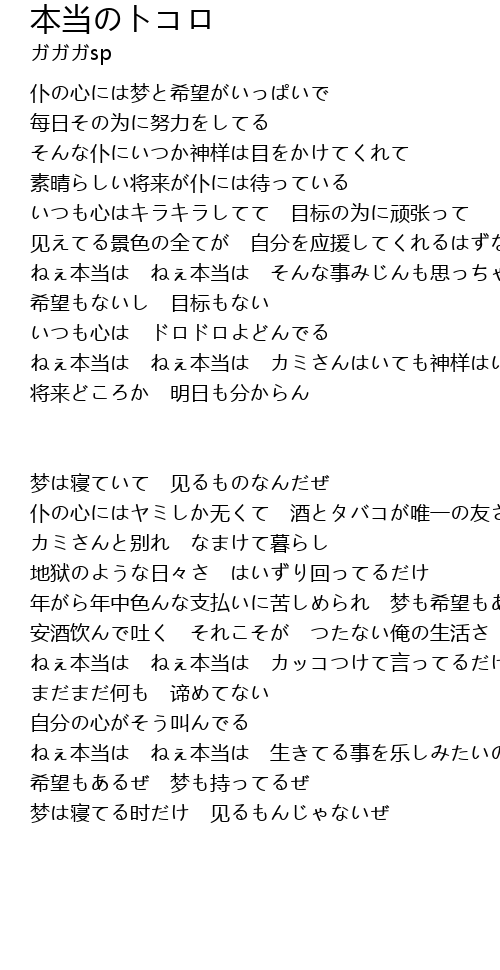 | ねぇ本当は ねぇ本当は 生きてる事を乐しみたいのさ | |