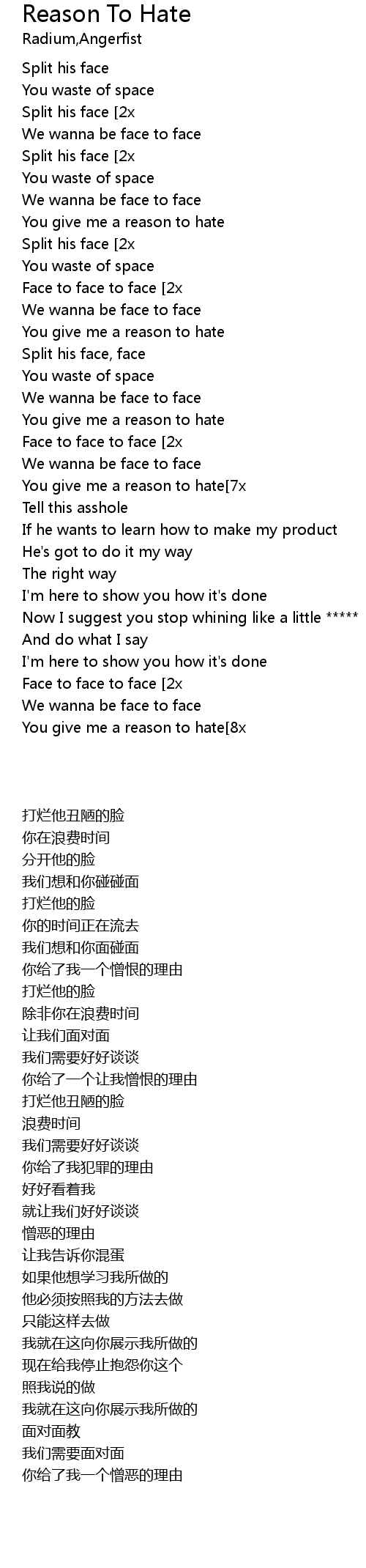 | [04:32.78]You give me a reason to hate[8x] |