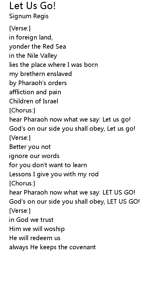 hear Pharaoh now what we say: LET US GO! |