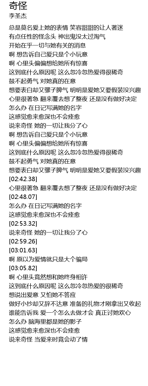 | [03:17.00] | 这到底什么原因呢 这么忽冷忽热爱的很稀奇 |