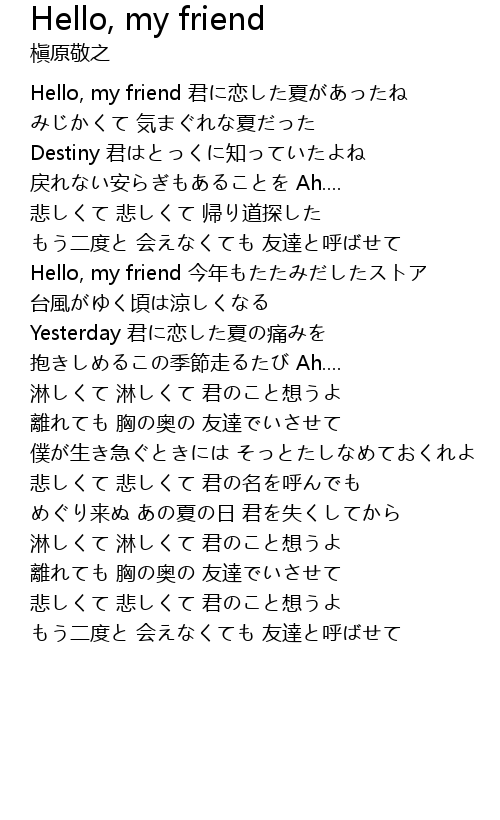 | Hello, my friend 君に恋した夏があったね | |