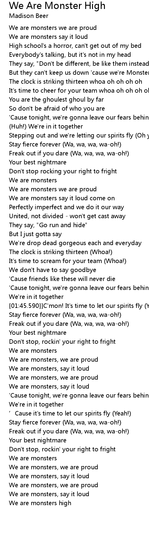 | [02:58.890] | We are monsters high |