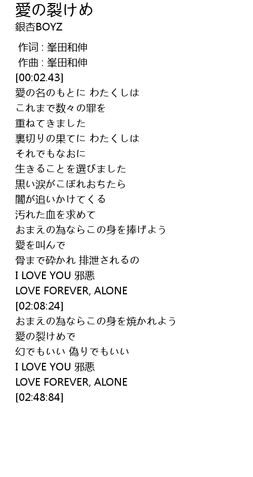 | [02:02:60] | LOVE FOREVER, ALONE |
