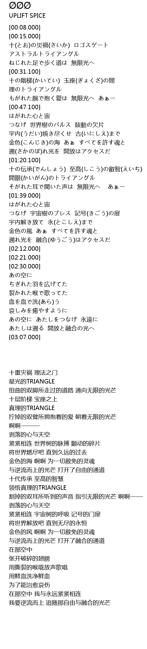 | [02:58.000] | あたしは遡る 開放と融合の光へ |