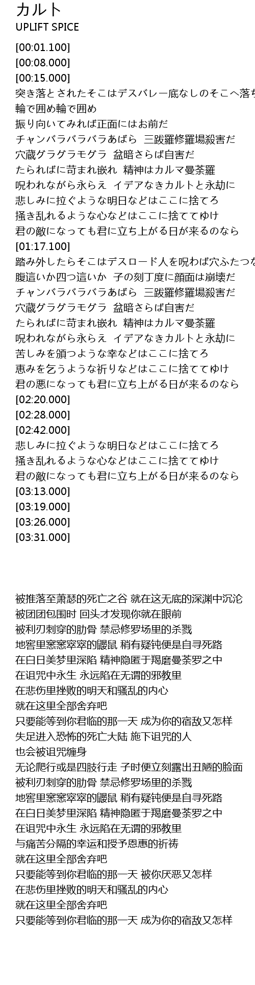 | [00:46.800] | 呪われながら永らえ イデアなきカルトと永劫に |