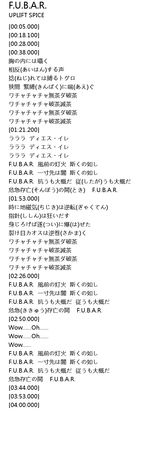 | [01:48.000] | 危急存亡(そんぼう)の鬨(とき) F.U.B.A.R. |