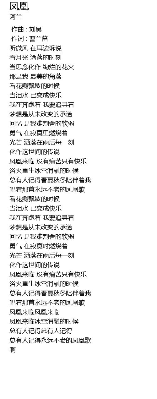 | [03:29.01] | 总有人记得永远不老的凤凰歌 |
