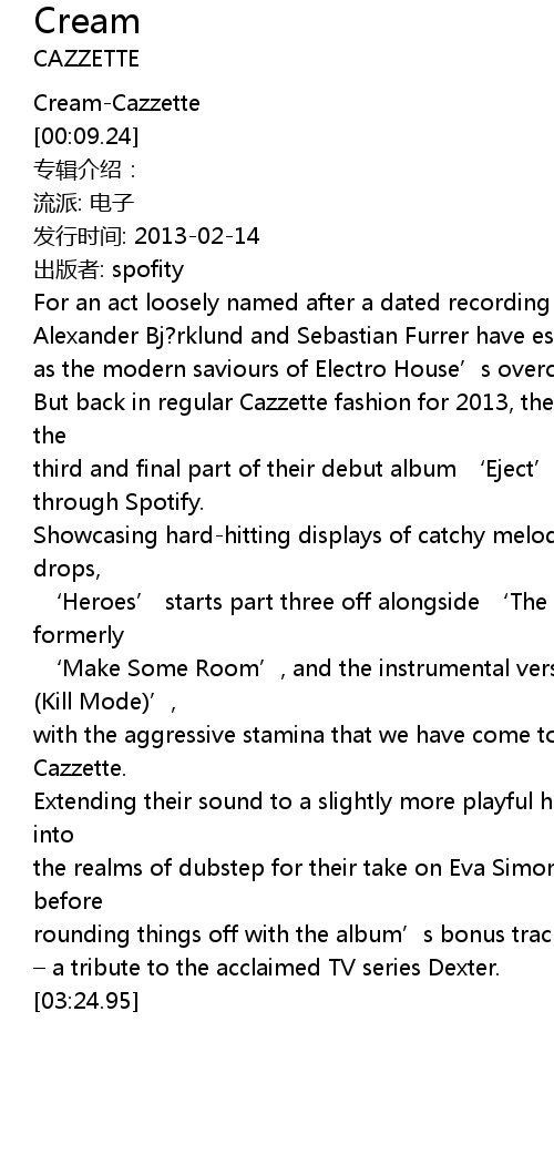 | [00:01.07] | Cream-Cazzette |