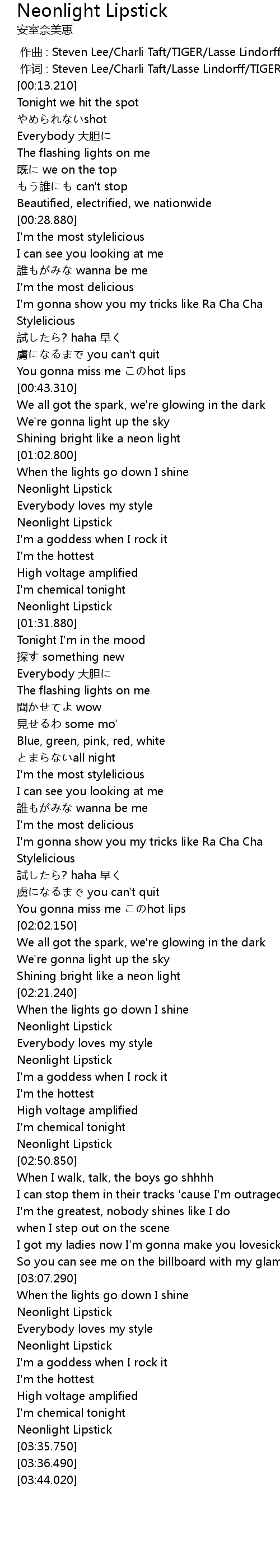 | [03:22.450] | Neonlight Lipstick |