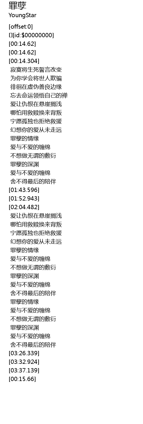 | [03:02.195] | 罪孽的情缘 |