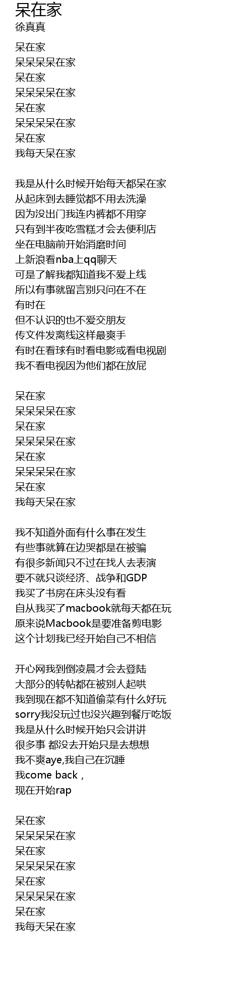 | wo shi cong shen me shi hou kai shi mei tian du dai zai jia | |