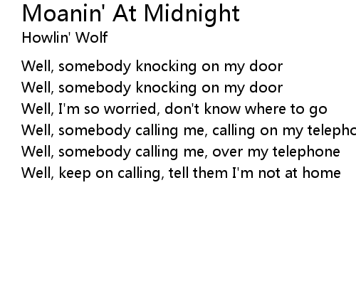 | Song | Moanin' At Midnight |
