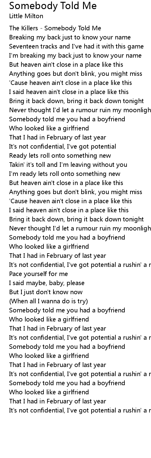 Somebody told me you had a boyfriend |