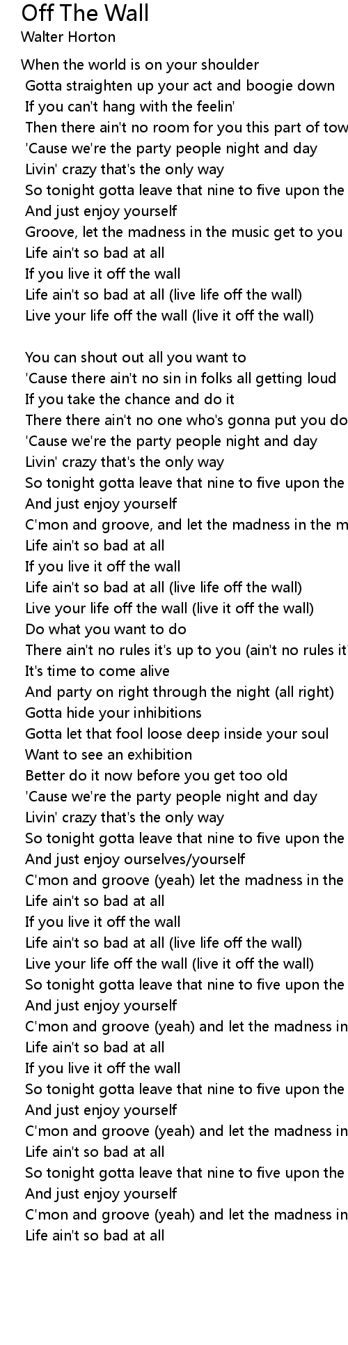 Life ain't so bad at all (live life off the wall) |
