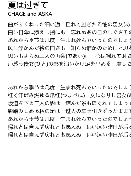 | Song | 夏は过ぎて |