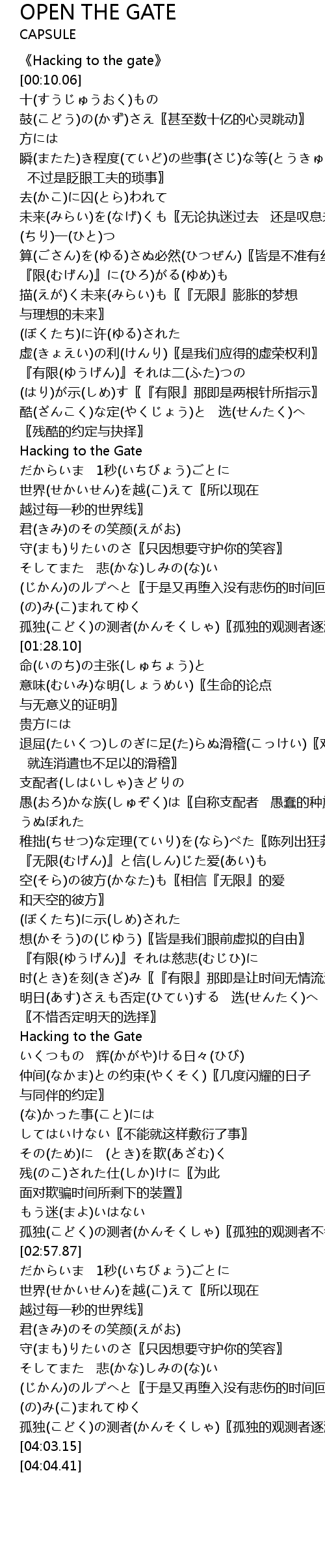 | [02:44.07] | その(ため)に (とき)を欺(あざむ)く 残(のこ)された仕(しか)けに〖为此 面对欺骗时间所剩下的装置〗 |