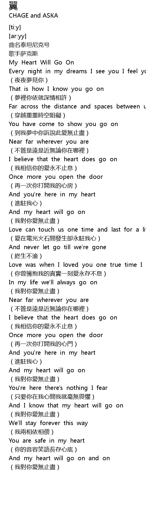 | [01:31.453] | And my heart will go on |