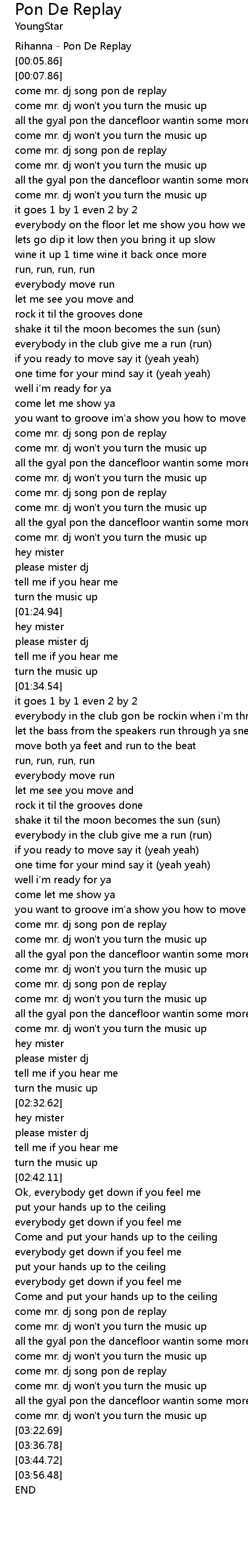 come mr. dj song pon de replay |