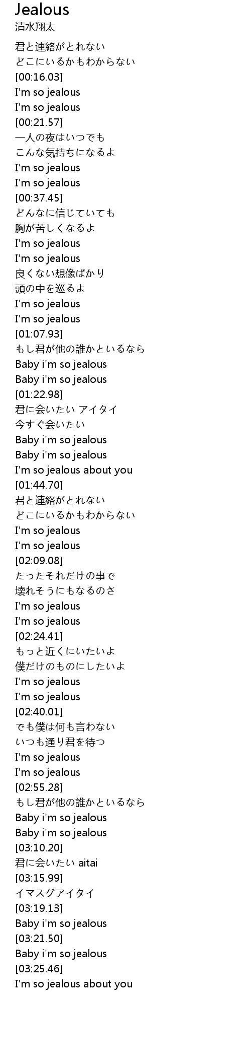 | [03:23.72] | Baby i'm so jealous |