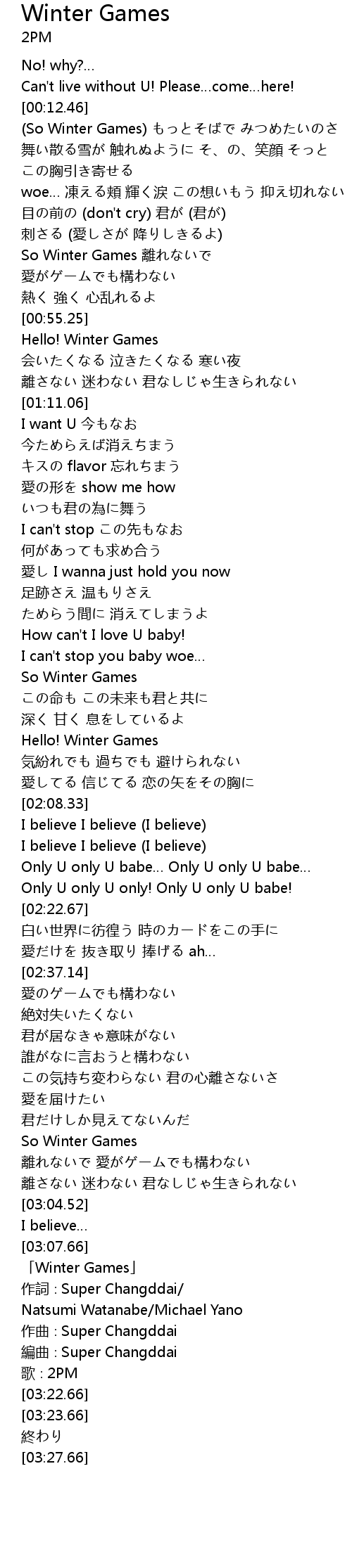 | [03:10.66] | 「Winter Games」 |