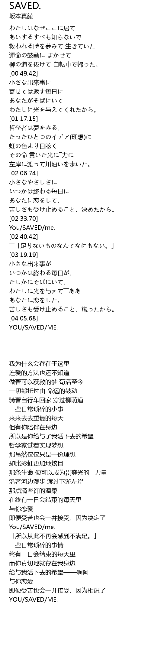 | [00:24.47] | 救われる時を夢みて 生きていた |