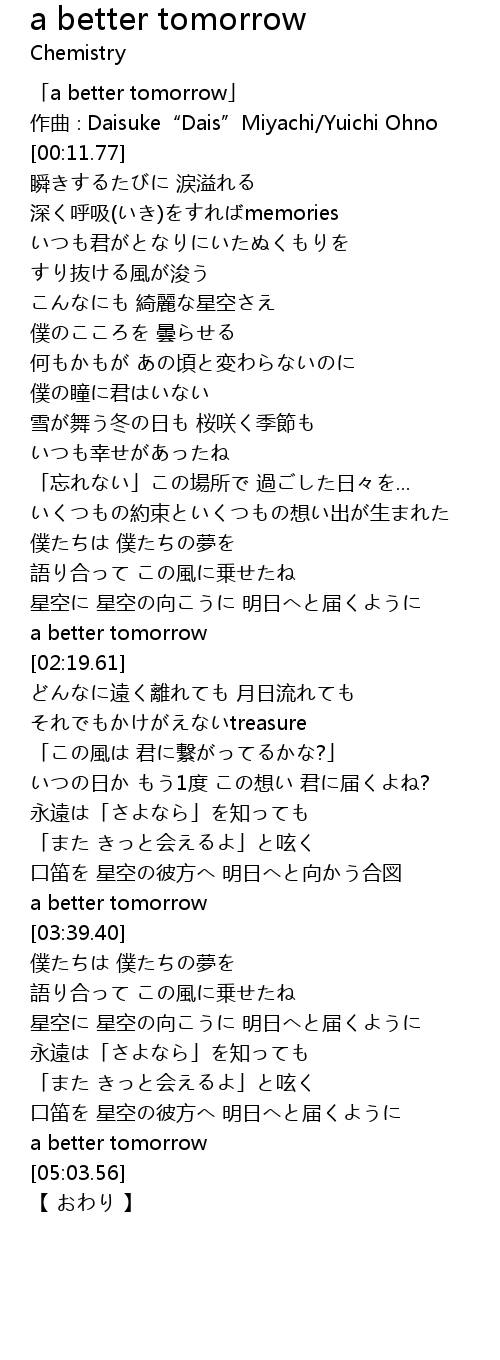 | [00:03.77] | 「a better tomorrow」 |
