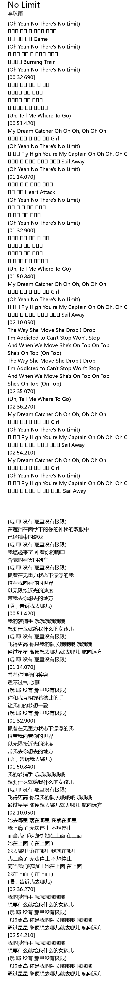| [00:58.490] | Oh Yeah No There' s No Limit |