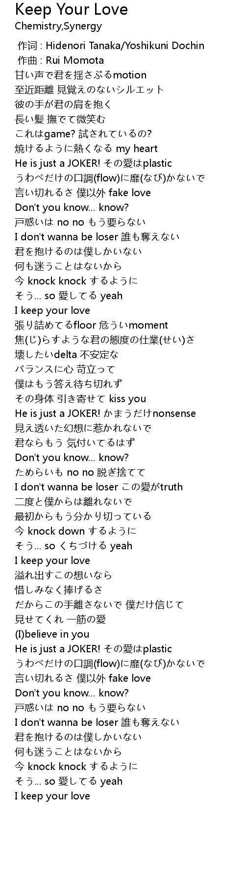 | [00:45.022] | He is just a JOKER! その愛はplastic |