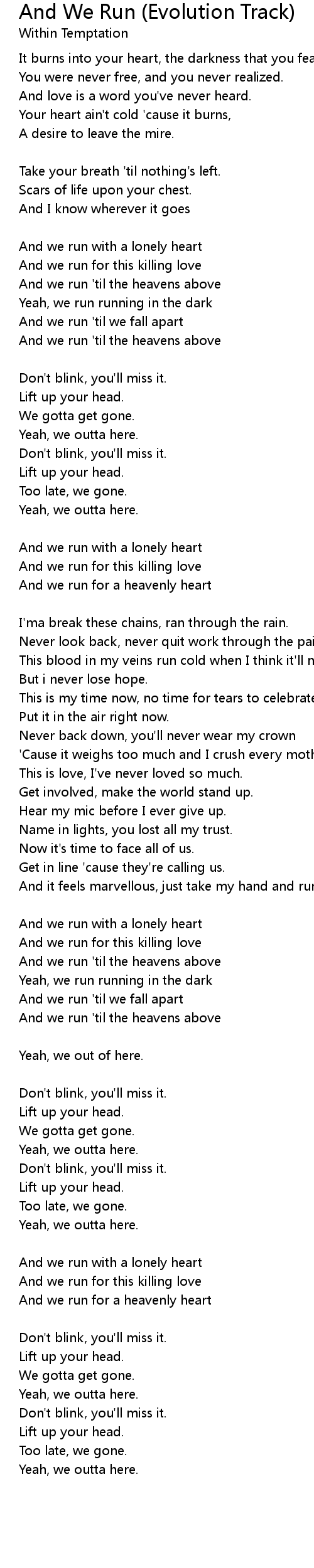 And we run 'til the heavens above |