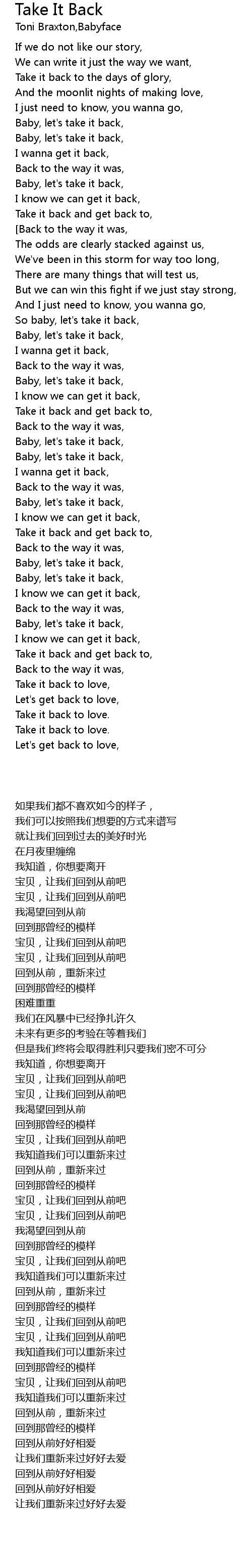 Baby, let's take it back, |