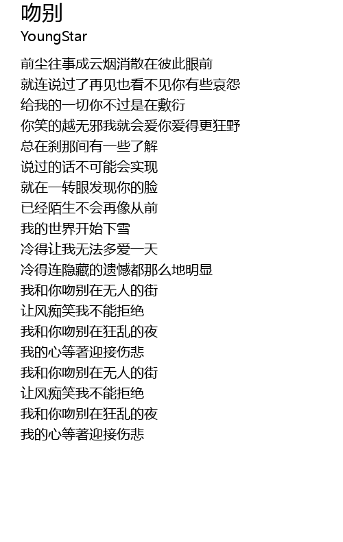 | [01:52.940] | 我和你吻别在狂乱的夜 |